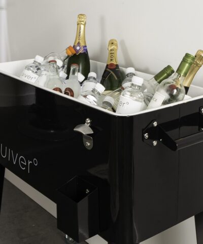 Nevera forrada de metal lacado negro.